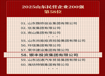 銀豐集團(tuán)再獲佳績!入圍2025山東民營企業(yè)百強(qiáng)系列三大權(quán)威榜單